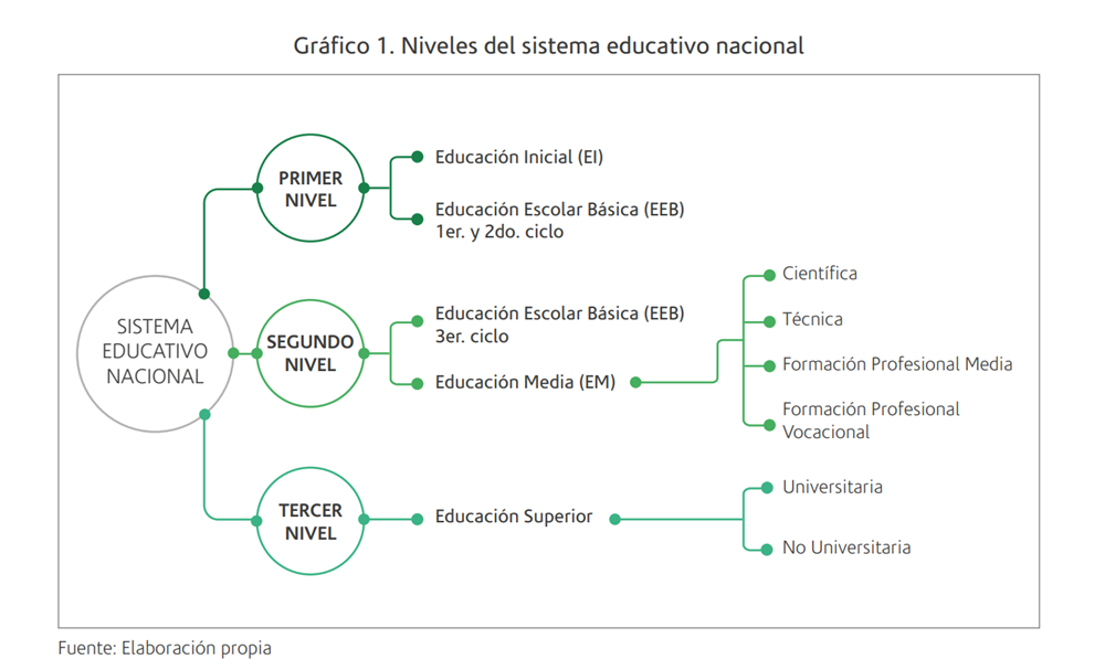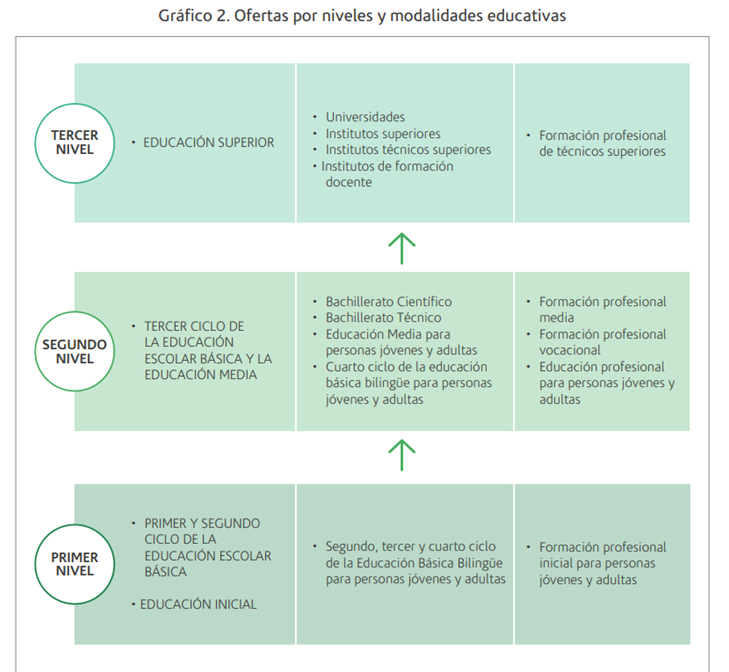 Gráfico 3. Niveles del sistema educativo paraguayo y sus correspondientes programas de nivel CINE
